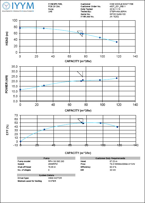 Input directly from test data and produce a detailed technical specification and test curve. Includes customer details, pump information, test conditions, field ratings and a wide range of graphing options.